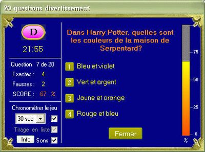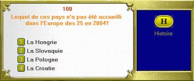Faites appel à votre culture générale en répondant à différentes questions classées en six catégories de sujets : géographie, histoire, arts & littérature, sciences & nature, sports & loisirs et divertissements. Votre objectif est d'obtenir six portions de camembert correspondant aux six catégories.