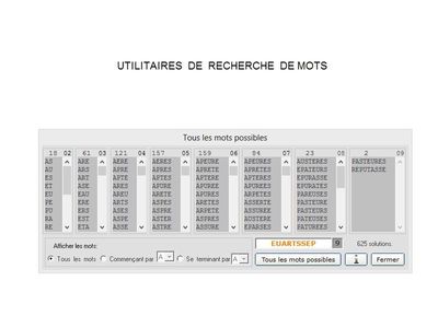 Divers utilitaires de tri et de recherche de mots sont inclus dans le jeu :